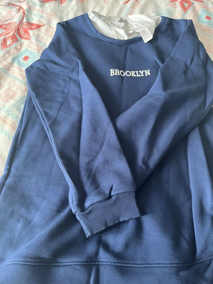 Pamuklu mavi sweatshirt, yuvarlak yaka ve ribanalı uzun kollara sahiptir. Rahat kesimli ve önünde 'BROOKLYN' baskısı bulunur. Bir kere kullanıldı