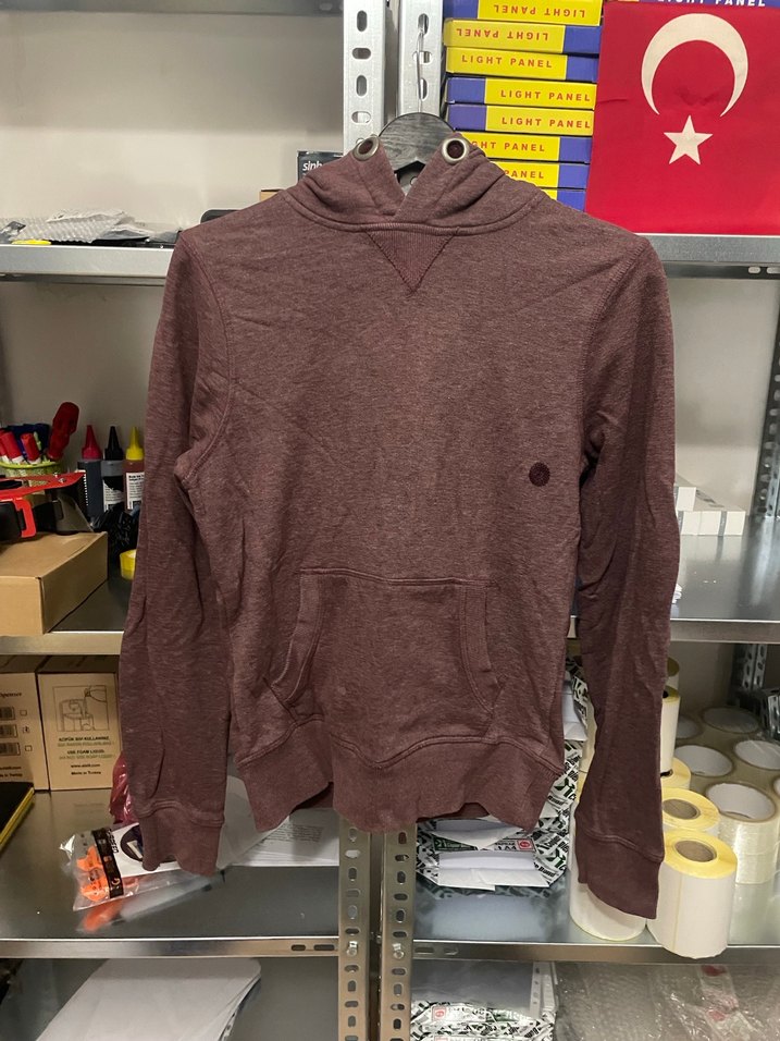 Kahverengi kadın sweatshirt, uzun kollu, yuvarlak yaka ve bol kesimdir. Düğmeli ve ön cebi vardır, yumuşak ve sıcak kumaştan üretilmiştir.
