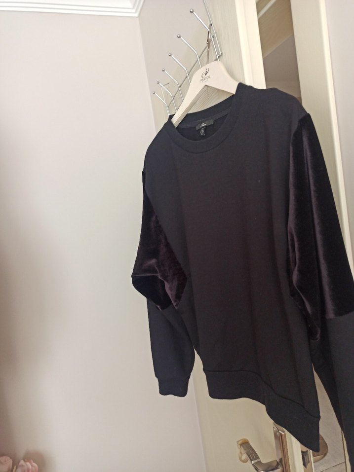 sweatshirt bluz kazak mavi M beden iki koltuk arası ölçüleri 60 boy 60 hafif yarasa kol gibi ana tam değil kadife kol detaylı arama Süet detaylı, uzun kollu, siyah kadın sweatshirt. Salaş kesimiyle günlük kullanım için rahat ve şık bir tercih.
