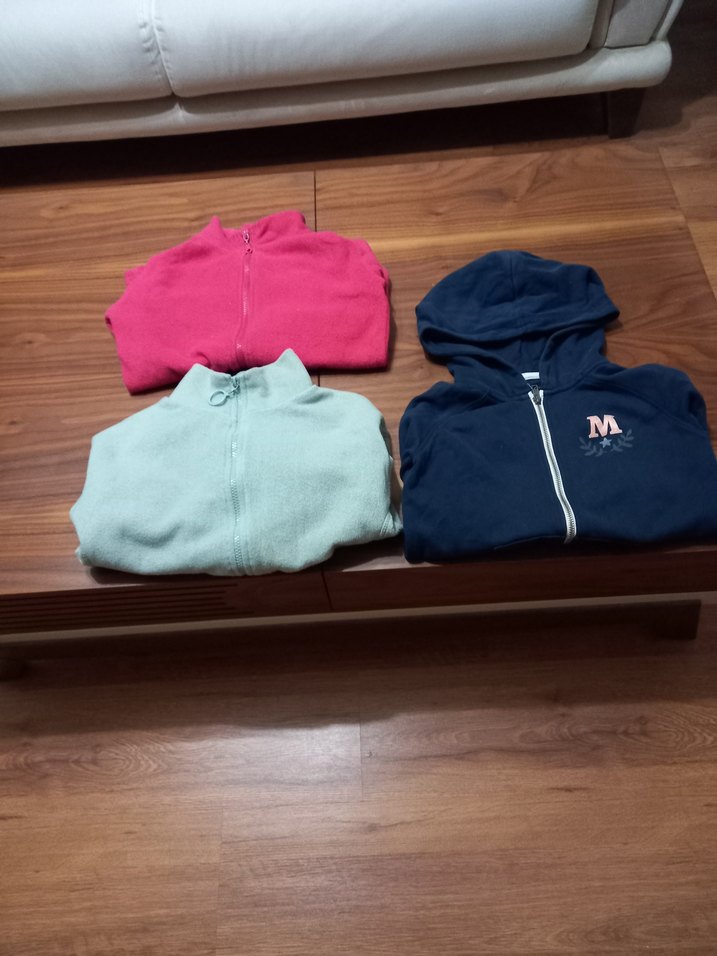 sweatshirt toplu satış 8/12 yaş ürünler temiz giyilmiş ürünler sadece pembe olan sweatshirtte hafif tuylenme olmuş kollarında resimlerinde belirttim uzun süredir kullanılmıyor küçük geldiği için ürünler ikisi polar ürünler resimleri yeni çekilip yüklenmiştir resimlerine iyice bakıp bilgilerini okuyup sormak istediğiniz soruları sorup bilerek alım yapiniz iade kabul etmiyorum şehir İzmir hepsinin fiyatidir tek olarak alınmak istenirse pembe olan 70 tl lacivert olan kapşonlu 140 tl yeşil olan 150 tl bütün bilgilerini yazıyorum ona göre bilerek alım yapiniz