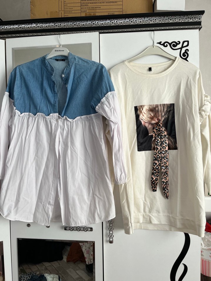 Sweatshirt ve kot detaylı gömlek ikili satıştır