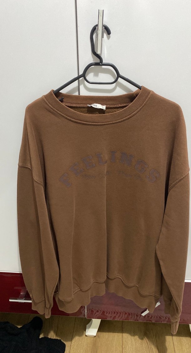 Kahverengi kadın sweatshirt, bisiklet yaka ve uzun kolludur. Rahat kesimi ve yumuşak süet kumaşıyla sokak stiline uygun baskılı tasarıma sahiptir. Günlük kullanıma uygundur.