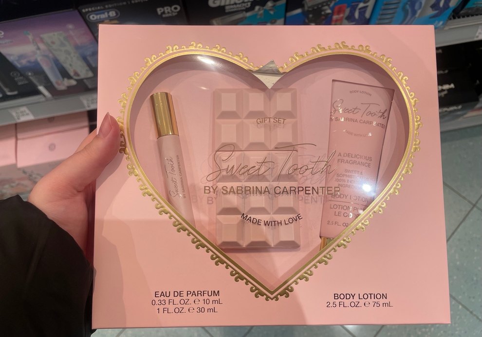 Sabrina Carpenter imzalı Sweet Tooth hediye seti, pembe kalp kutuda Eau de Parfum ve vücut losyonu içerir. Tatlı ve narin bir koku sunar. Ön sipariş postudur. 1 adet mevcuttur