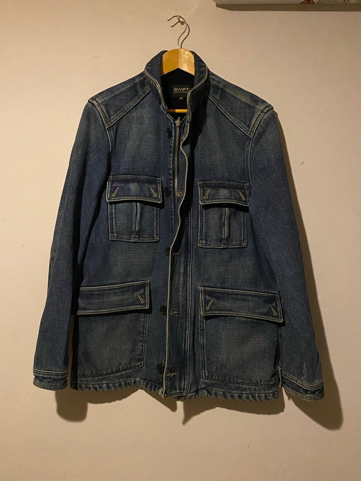 Swift marka Vintage Erkek Lacivert Düğmeli Denim Ceket