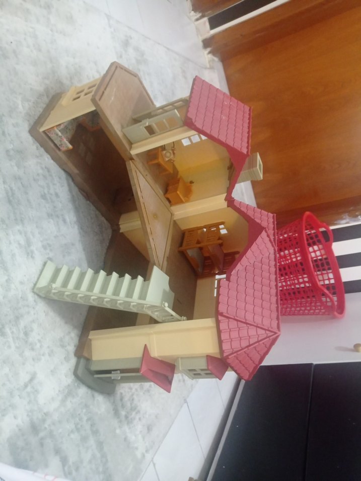 Pembe çatılı, çok katlı ve merdivenli açık oyuncak evdir. Hayal gücünü geliştiren çeşitli odalar bulunur.