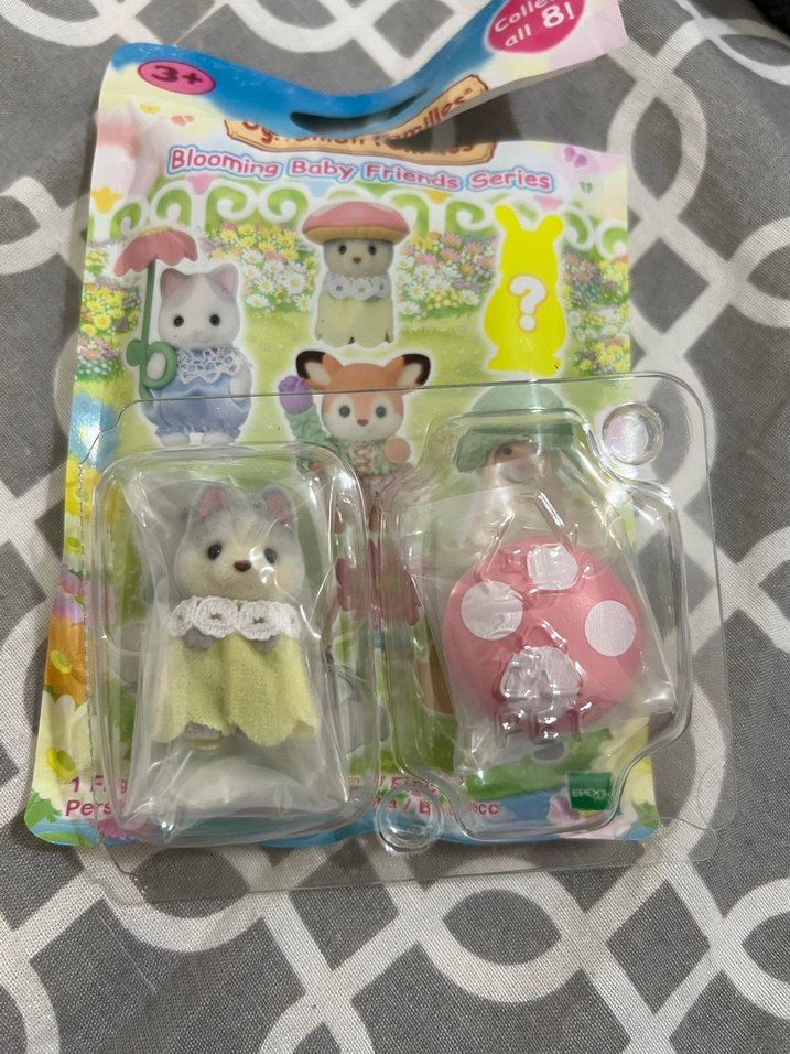 Pastel pembe renkte, sarı kıyafetli küçük hayvan figürü ve beyaz benekli pembe mantar aksesuarı içerir.
