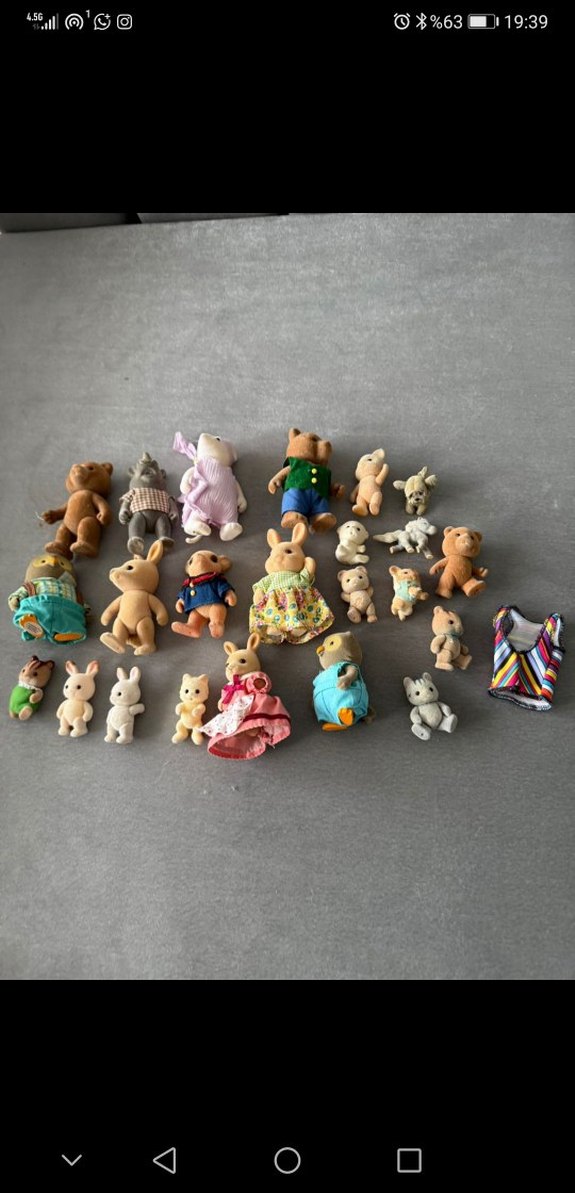 Sylvanian Families figurler Sylvanian Büyükler 750 küçükler 500 tldir Pastel tonlarda çeşitli boy ve kıyafetlerde hayvan bebeklerden oluşan set, yumuşak kumaş ve detaylı tasarıma sahip.
