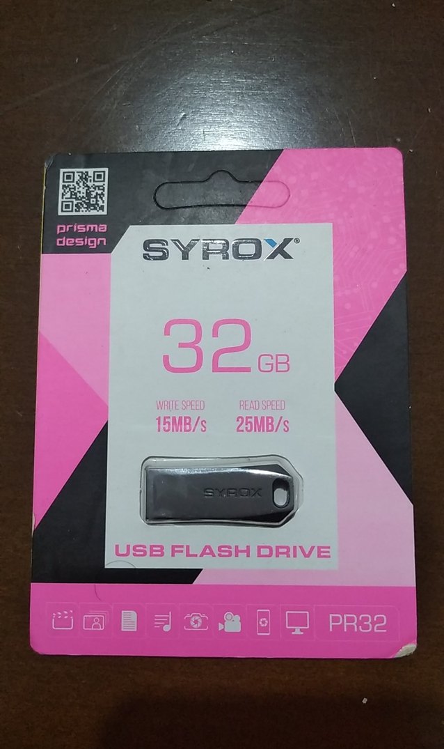 SYROX 32GB USB bellek, 15MB/s yazma ve 25MB/s okuma hızına sahip pembe plastik kasada, güvenilir veri depolama ve aktarımı sağlar.