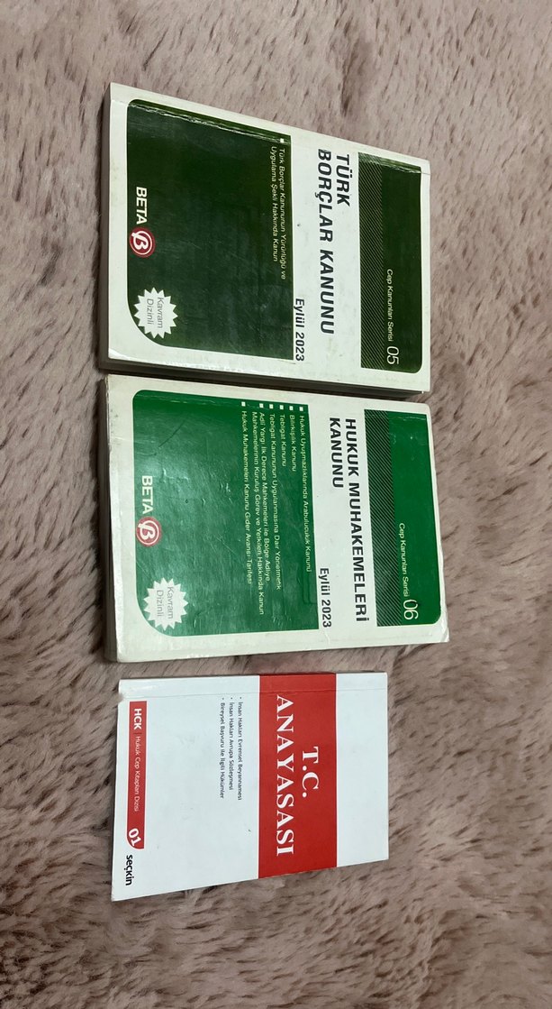 T.C. Anayasası, Türk Borçlar Kanunu ve Hukuk Muhakemeleri Kanunu sınav hazırlık kitapları. Tek almak isterseniz ilan açabilirim. 2 kitabın fiyatıdır BORÇLAR KANUNU SATILDI