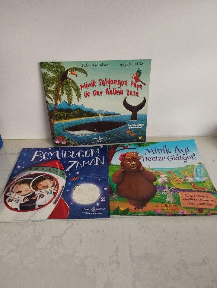 Minik salyangoz, büyüme zamanı ve denize giden minik ayı temalı çocuk kitapları seti. Renkli resimlerle eğlenceli hikayeler içerir. ürünler yeni gibidir. deformesi yoktur.