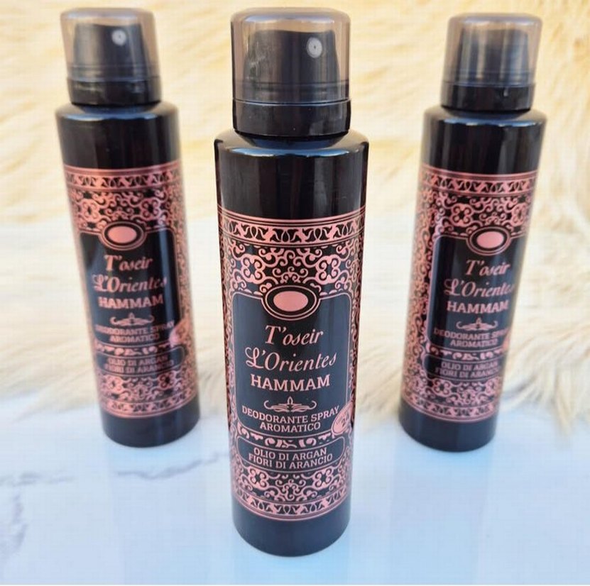 T'oseir L'Orientes Hammam deodorant spreyi, argan yağı ve portakal çiçeği aromalı, kalıcı ferahlık sağlar.