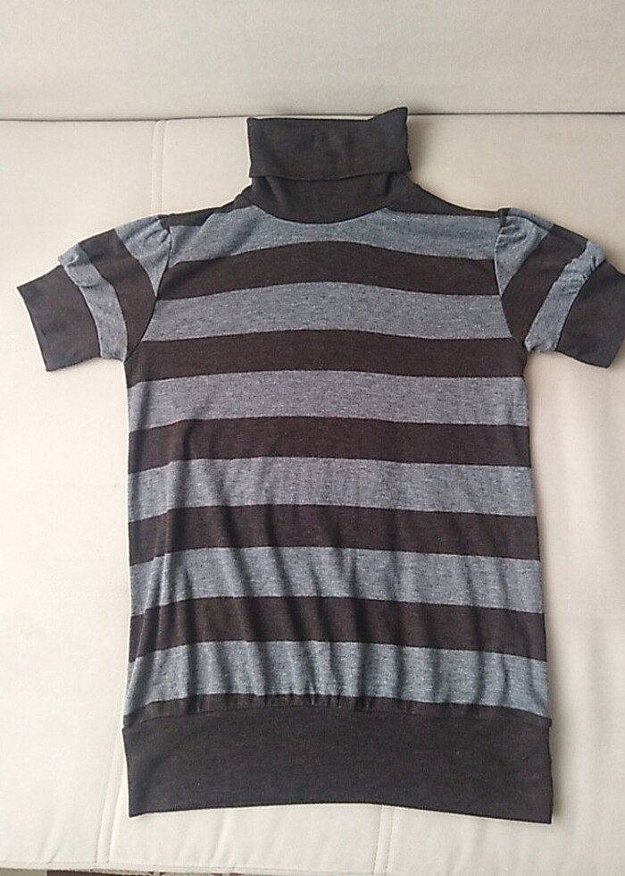 Birkaç kez giyildi.Ufak kusurları var hiç belli değil modeli boyunlu, kısa kollu, kumaşı kışlık gibi kalın T-SHIRT badi modellidir.Rengi kahve melanj herhangi renginde bozulma yoktur.Boyu normaldir.Bedeni M herhangi bir kusuru yoktur giyinebilir durumda detayları fotoğrafta paylaşılmıştır.İadeye sıcak bakmıyorum.