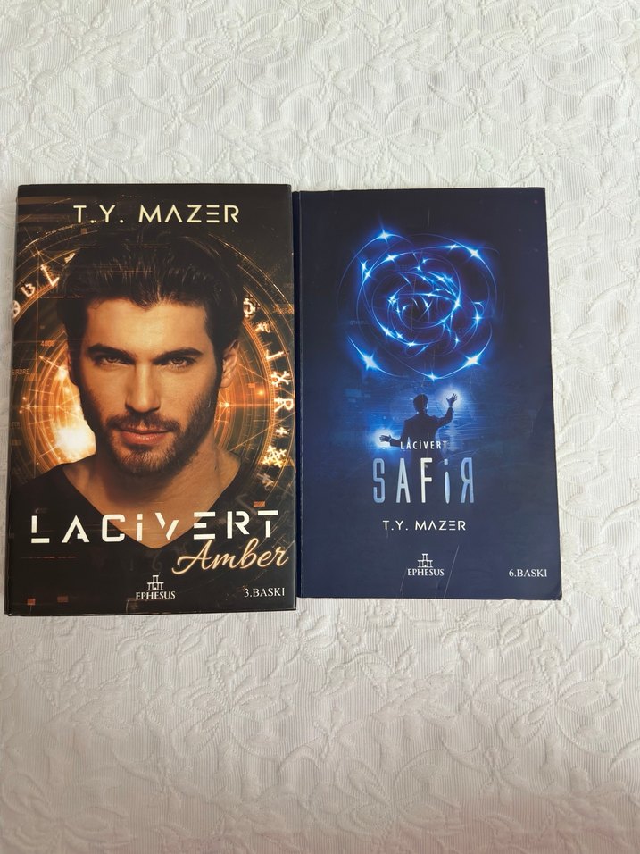 T.Y. Mazer'in 3. baskı "Amber" ve 6. baskı "Safir" romanları, farklı kapak tasarımlarıyla sunuluyor. 3. ve 2.kitabı temiz resimde göründüğü gibi