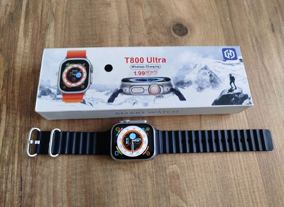 T800 Ultra akıllı saat, 1.99 inç ekran ve Koyu çok renkli tasarıma ve esnek kayışa sahiptir. ⌚