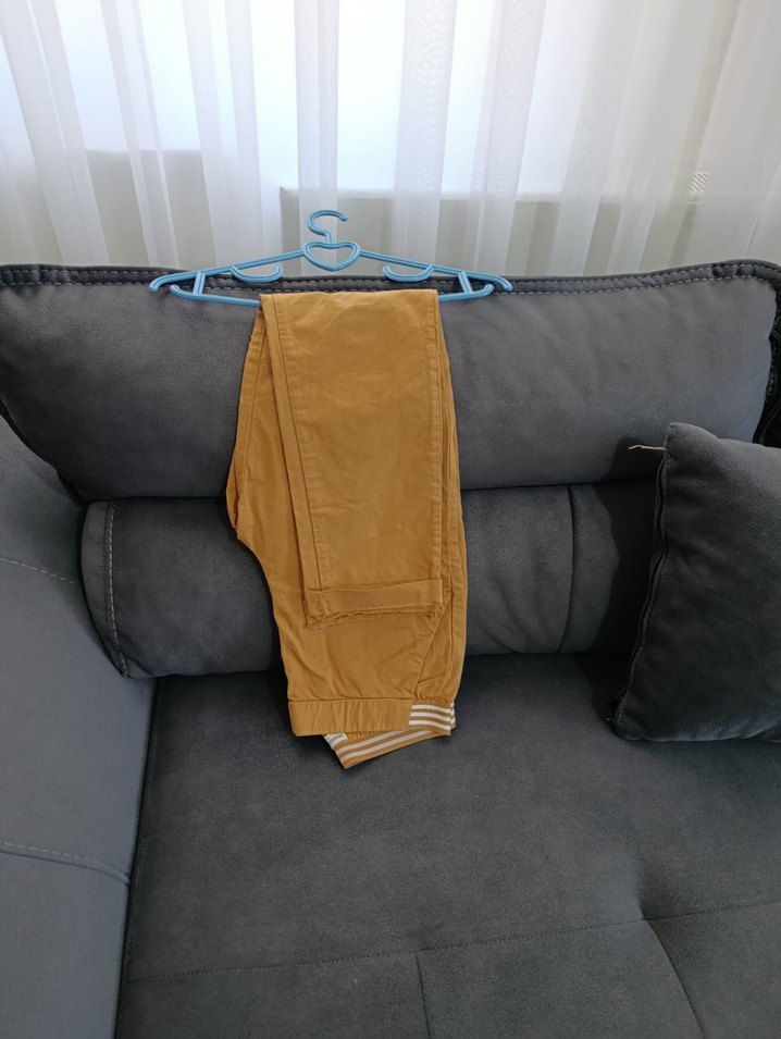 taba renkte ve bol kesim mudo pantolonu. Yumuşak sentetik kumaştan, desen içermeyen sokak stiline uygun.