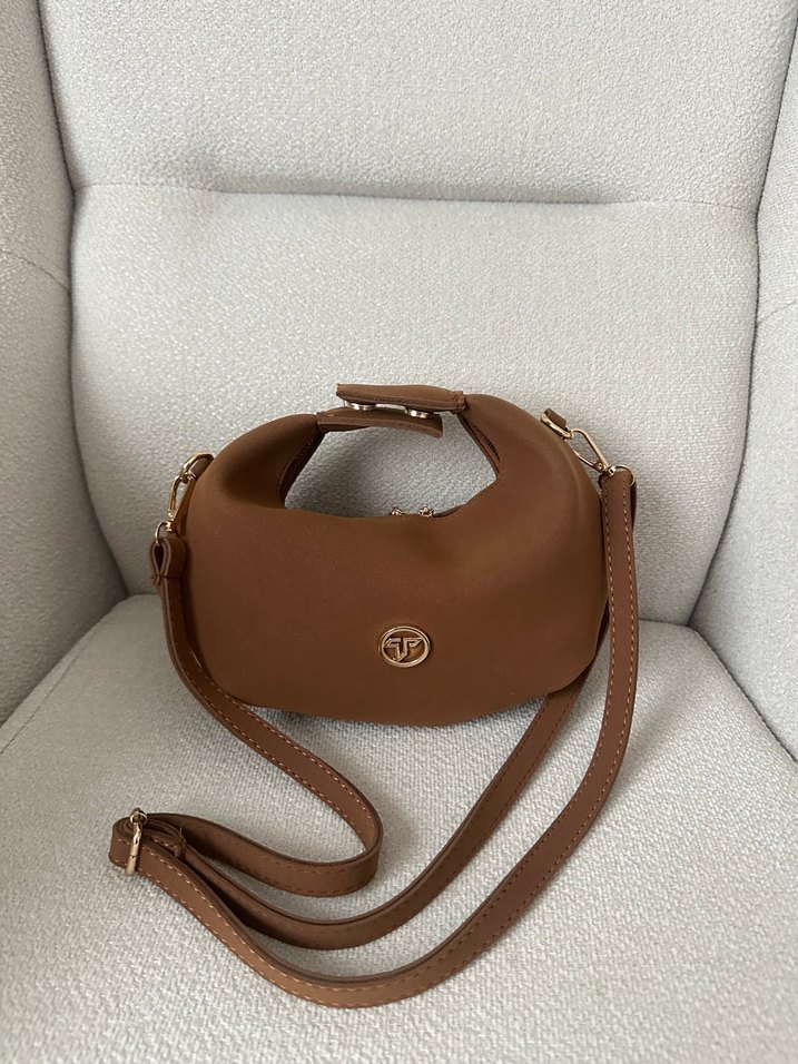 Taba deri kadın çanta, tokalı tasarımı ve parlak yüzeyi ile trend günlük kullanıma uygun minimal bir stile sahiptir. Yeni etiketli