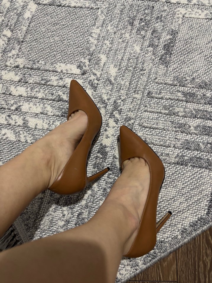 Taba renkte deri stiletto topuklu kadın ayakkabısı, ince topuklu ve bağcıklı detaylı, günlük kullanıma uygun modern tasarım.