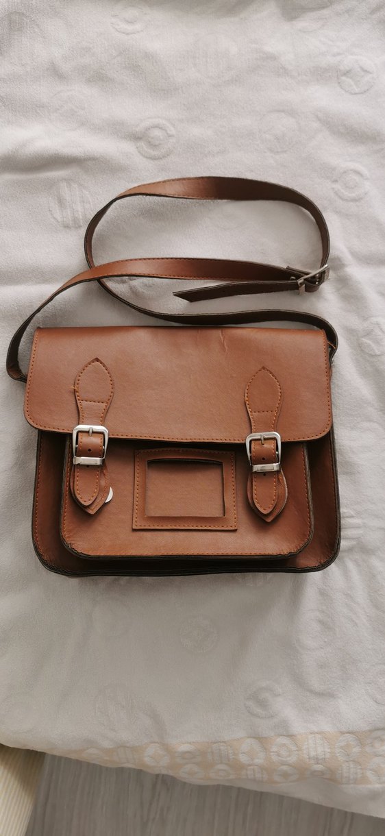 Taba renkli. El ve omuz cantasi, tokalı kapaklı kadın çantası. Parlak yüzeyi ve sade tasarımıyla bohem stilini yansıtıyor.