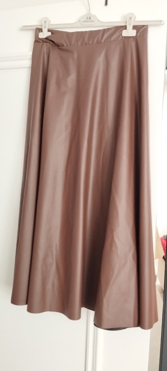 Taba rengi deri etek Bej Drapeli Uzun Kadın Etek