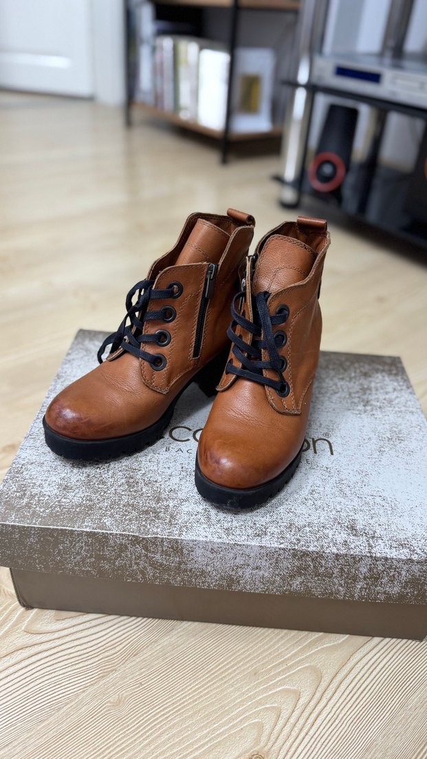 Taba Rengi Hakiki Deri Kadın Topuklu Bot