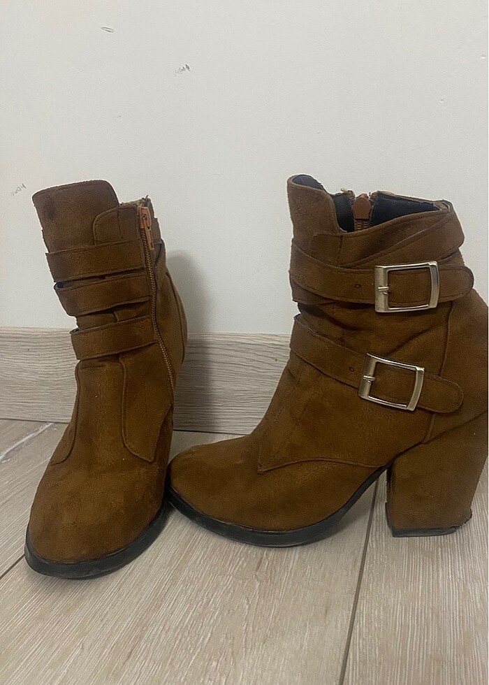 Taba rengi kovboy topuklu bot Topuk kısmında deforme var