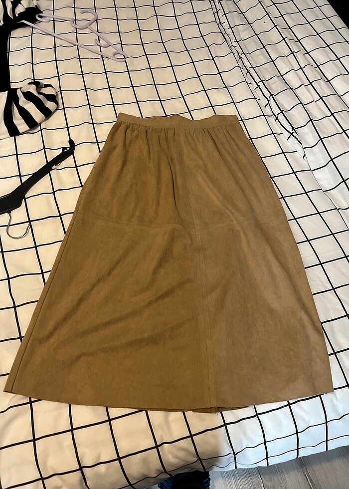 Süet taba renk yüksek bel midi boy etek Boy: 70 cm En:36 cm