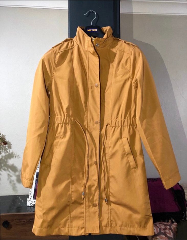 Düğmeli ve fermuarlı,astarlı trençkot. İsteyene ölçülerini atarım.