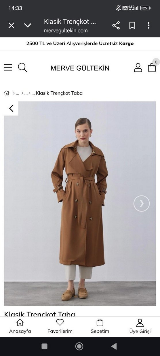 İNDİRİM YAPIYORUM KYKLI KARDEŞLERİME YA DA ÖĞRENCİ Taba renkte uzun klasik trençkot, sentetik kumaştan, uzun kollu ve kesimli yakalıdır. Minimalist tarzıyla günlük kullanıma uygundur.