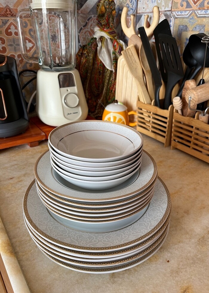 Az kullanılmış 6 kişilik 6 servis 6 ara sıcak 6 çorba tabakları mevcu