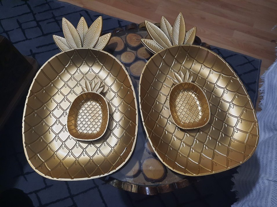 4tane tabağın fiyatıdır. Plastik bir ürün. Parlak altın renginde, bohem tarzda yılan desenli ve ananas şekilli tabak seti. Masanıza farklı bir hava katıyor .