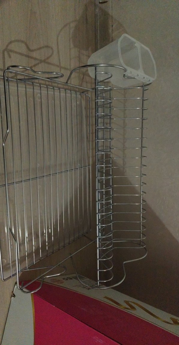 Gri metalden yapılmış, tabak çatal kaşık bıçak düzenlemek için kullanılan sağlam tel yapıya sahip bir tutucudur. çok iyi durumda sadece çatal kaşık koyulan yerde hafif çizik var onun dışında bi seyi yoktur