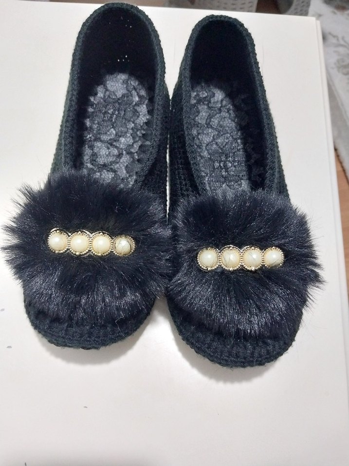 suni deri tabanlı içi dantelli ve cırt cirtli süsü yle rahat kullanılabilecek ceyizlik bir örgü babet