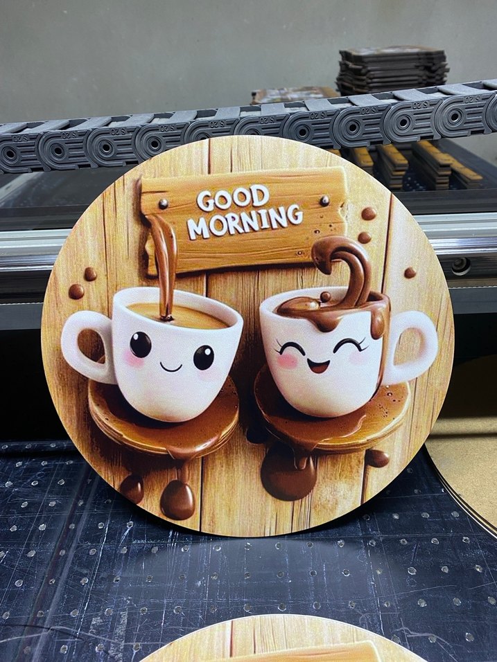 Ahşap üzerine baskı yapılmaktadır arkasında çift taraflı bant mevcuttur