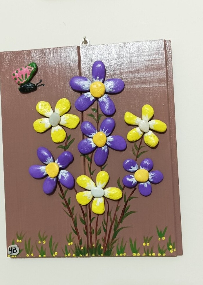 Çakıl taşları ile ahşap üzerine yapılan tablo. En 18, boy 22 cm. Yeni yapılmıştır. Mekanları renklendirir.