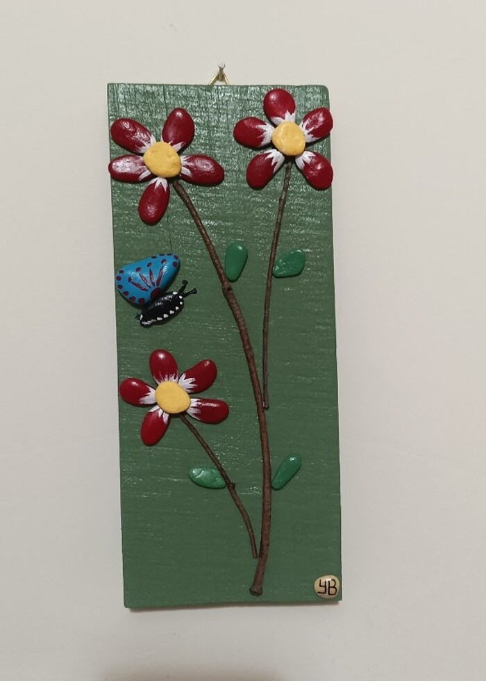 Çakıl taşları ile ahşap üzerine yapılan tablo. En 10, boy 24, 5 cm. Yeni yapılmıştır. Mekanları renklendirir.