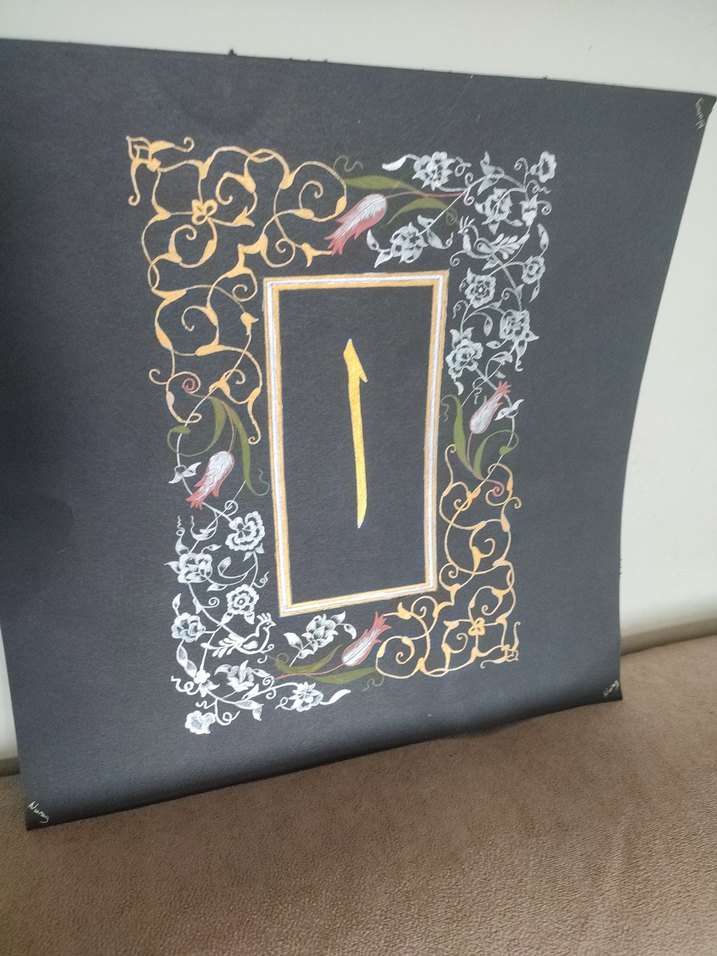 karton üzerine tezhip sanatı ile yaldız boyalar ile yapılmıştır el emeği. çerçevesiz fiyatıdır ölçüleri 34*34 cm dir.