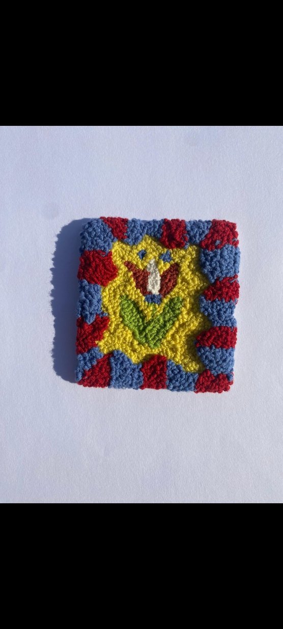Çiçek desenli, dokulu detaylara sahip renkli el yapımı minik tablolar, bardak altlıkları