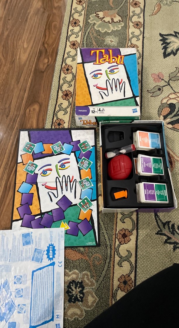 Tabu, zamanlayıcı, zili ve çoklu kart desteleri içeren çok renkli bir masa oyunudur. 12 yaş ve üzeri, 4-8 oyuncu içindir. Sadece 1 piyon eksik başka eksiği yok