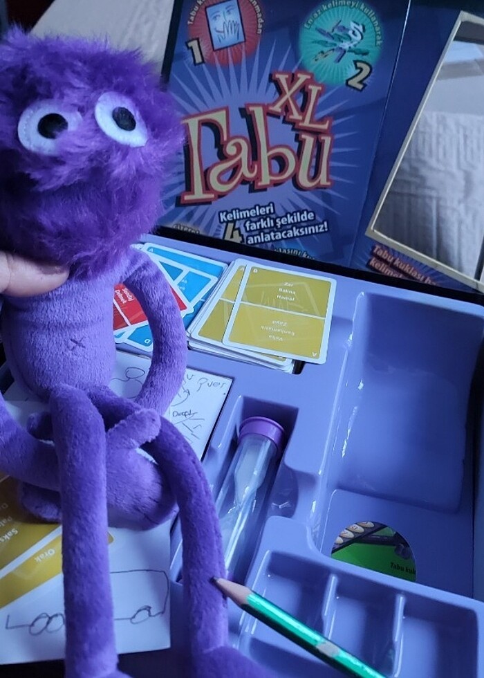 Tabu oyunu sadece 1 kez kullanıldı, defteri kuklası kartları sıfır