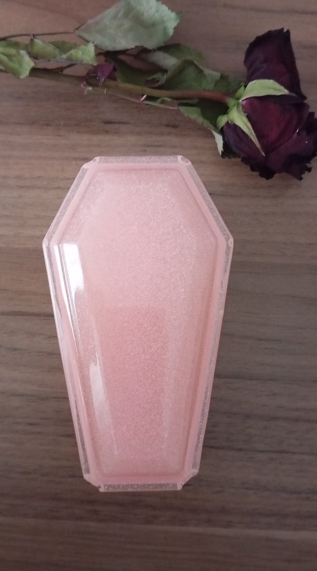 Tabut şeklinde simli pembe takı kutusu.Takilar için ideal boyut Ancak görsel de belirttiğim gibi kapak kısmında bazı boşluklar varOnun dışında bir sorunu yoktur