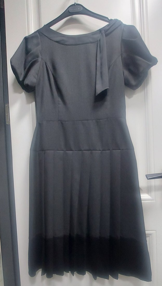 Boyu 103 cm,ön iki kol altı genişlik 43 44 cm gibi. Bel genişliği 76 77 cm gibi.Yandan fermuarlı.Yaka etek uçları ipek saten yeni hiç giyilmedi temiz defosuz.Klasik zarafeti yansıtan, tek renk gri midi elbise. Tekne yaka, kısa kollu ve pilili detaya sahip, ofis gezme gece gündüz giy çık elbiseÖlçülere dikkat ederek alınız iade kabul etmiyorum #tabuu #elbise #midi