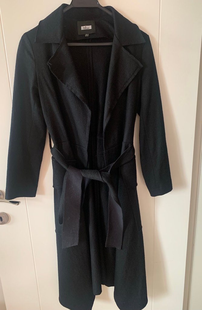 Siyah, uzun kollu, kuşaklı ve yaka detaylı, yumuşak ve sıcak kumaştan kaban. Kece kumastan yapilmistir, cok hafif ve kullanisli, hicbir kusuru yok . s bedene daha uygun