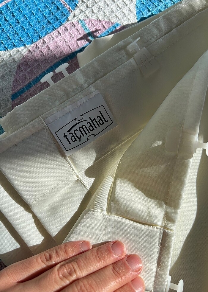 Taç 2’li güneşlik perde , kırık beyaz, kornişli ve 2 pencereliktir, yepyeni kullanılmadı ölçü uymadığı için satıyorum. En:210 Boy:175 ☺️