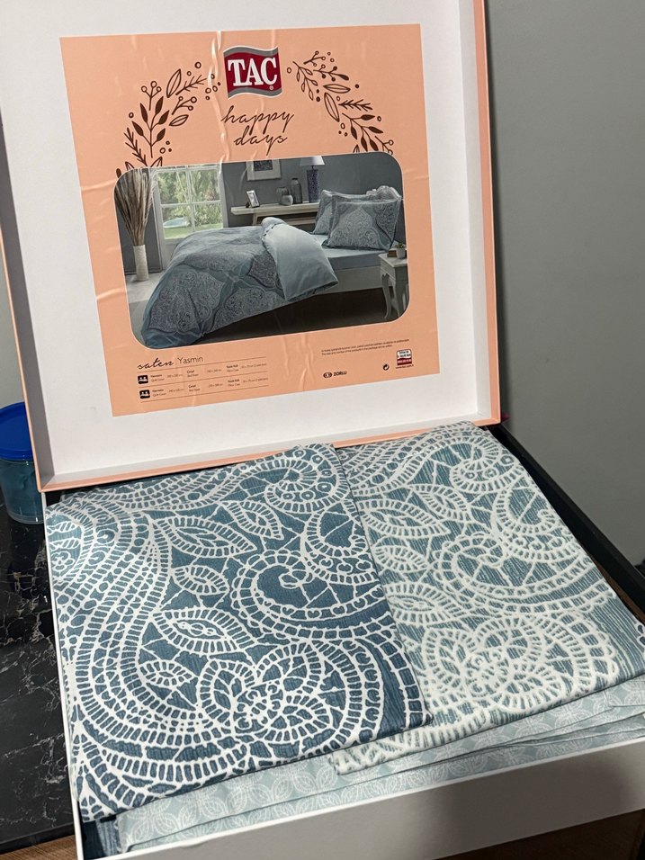 Taç çift kişilik Nevresim Takımı pamuk satendir 1kere kullanıldı sorunsuz tertemiz fazla olduğu için satıyorum