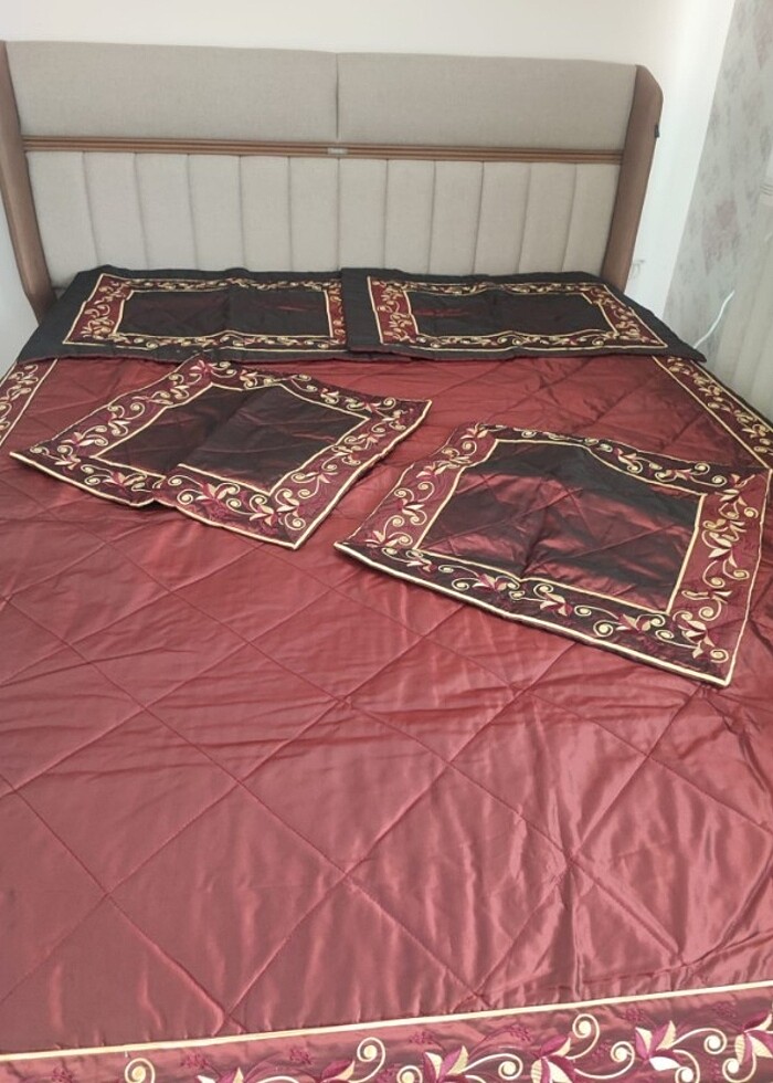 koçaklar homeart, dış yüzeyi kırışmaz asestatlı saten polyester, dolgu malzemesi elyaflı ,iç yüzey astar ,0 pamuklu ,altın varaklı su yolları olan ,sultan serisinden kullanılmadı ,çeyizlik veya günlük kullanıma uygun 2×60 2×60 ebatlarında ,2adet yastık kılıfı 50×57 ,2adet kırlent 50×50 tertemiz sorunsuz tam takım
