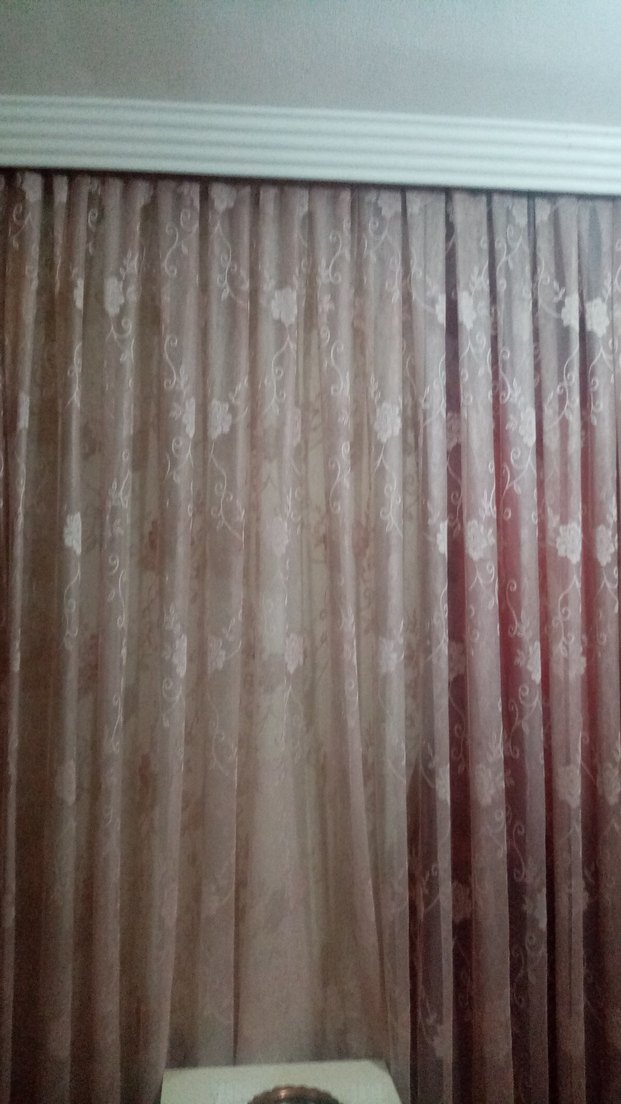 Hafif pembe renginde, klasik tarzda ve ince çiçek desenli, yumuşak ve sıcak bir atmosfer sunan perde.
