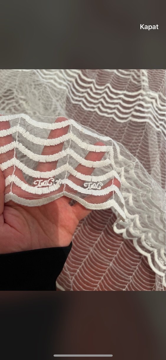 Bej renkte, gri nakışlı desenlere sahip bohem tarzda, ince tül kumaştan yapılmış perde. Boy 212 en 300