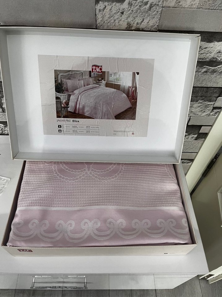 Taç eliza jakarlı pike takımı çarşaf lastikli renk:lila