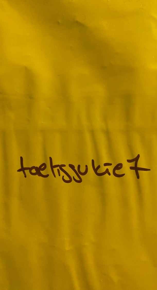 Sarı kapaklı ve el yazısı stilinde 'Taelisjukiez' başlıklı şiir kitabı.
