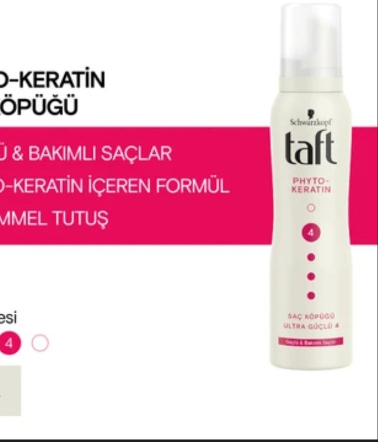 Taft Phyto-Keratin saç köpüğü, keratin içeren formülüyle bakım sağlar ve saçlara ultra güçlü tutuş sunar.
